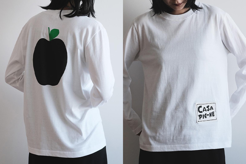 背中には大胆なリンゴの原画イラストがデザインされており、個性的なスタイルを演出できます。