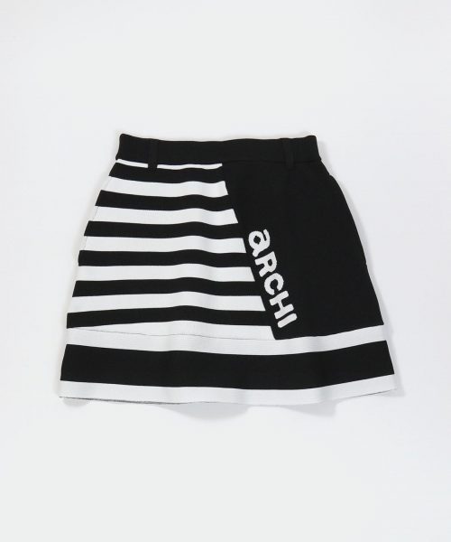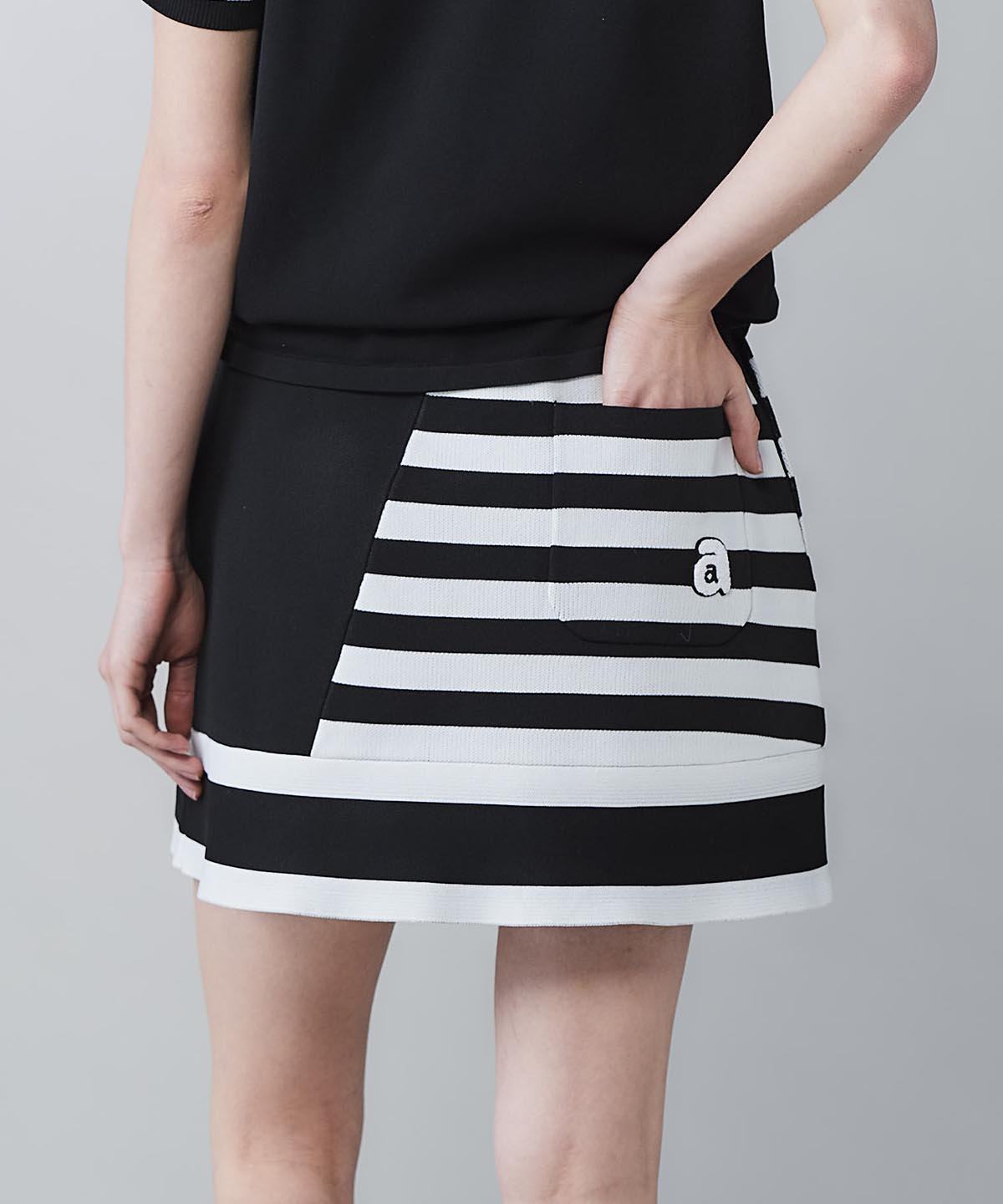 アクティブなボーダーと無地を切り替えたデザインが印象的なスカート。