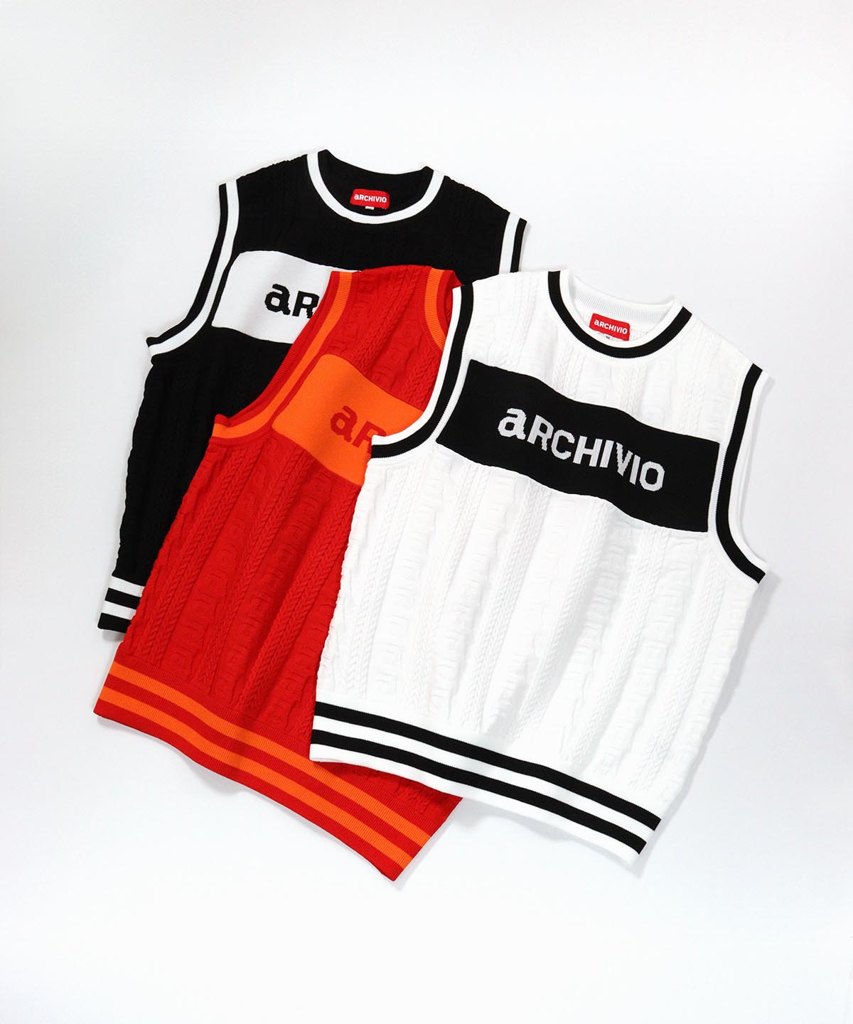 フロントに大胆なARCHIVIOロゴをあしらったニットベスト。
