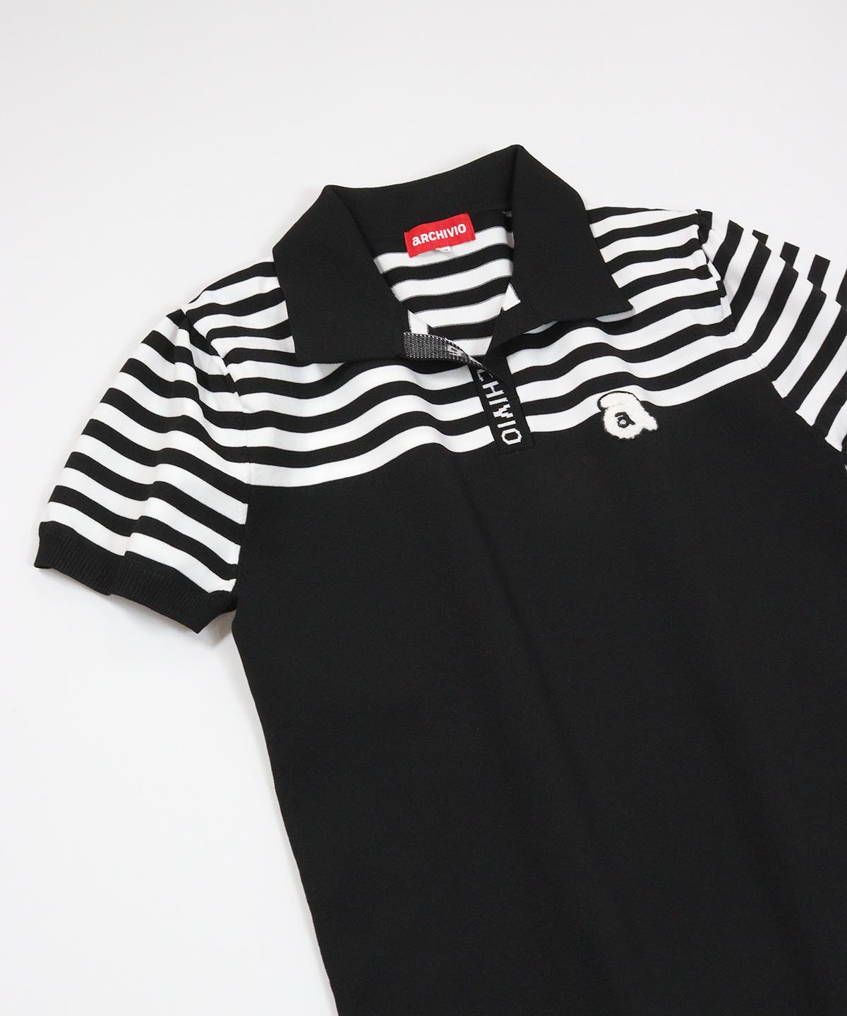 モノトーンのボーダー切替がシャープな印象のニットポロ。