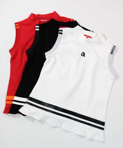 スポーティーなモックネックに、肩口と裾のラインがアクセント。