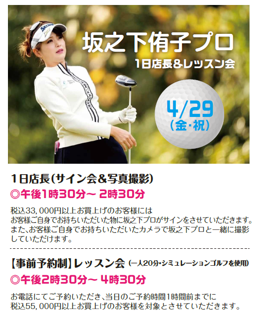 当日は坂之下侑子プロが店頭にて皆様をお迎えします。