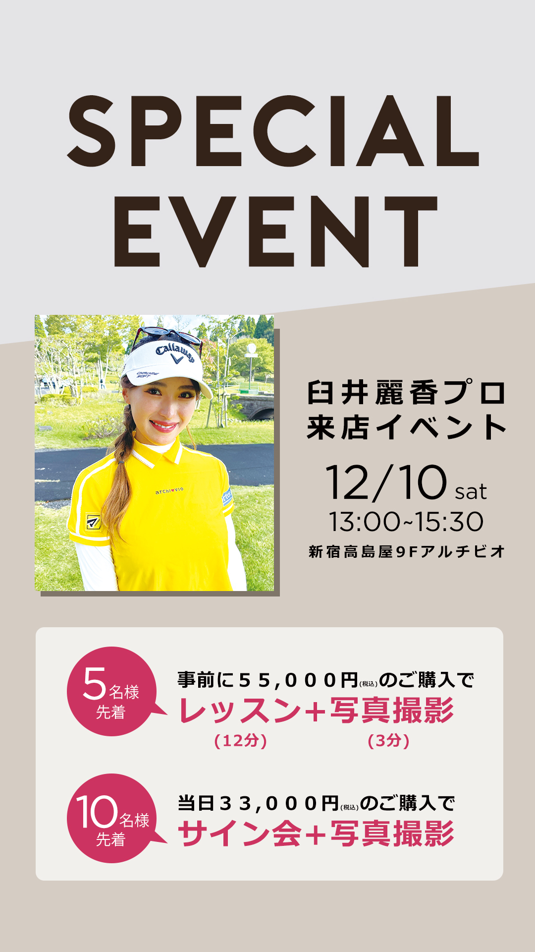 当日は臼井麗香プロが店頭にて皆様をお迎えします。