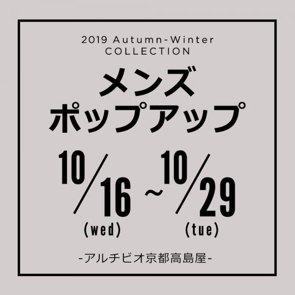 2019.10.16【京都高島屋店】期間限定メンズショップ開催のお知らせ(終了しました)