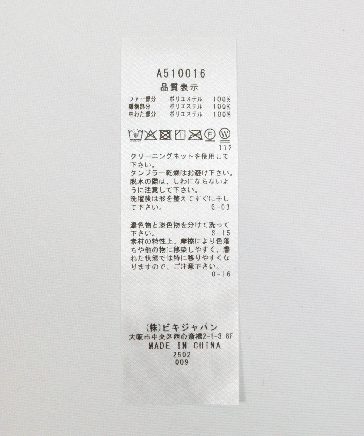 織物部分:ポリエステル100%