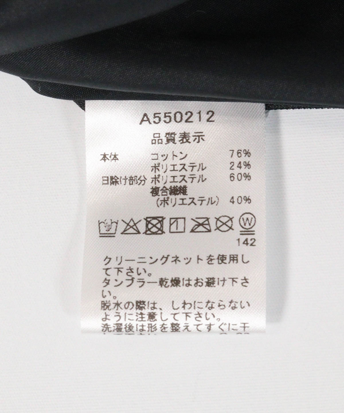 本体:コットン76%,ポリエステル24%日除け部分:ポリエステル60%,複合繊維(ポリエステル)40%MADE IN JAPAN