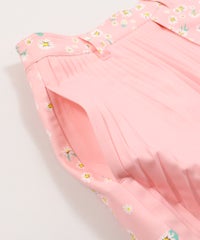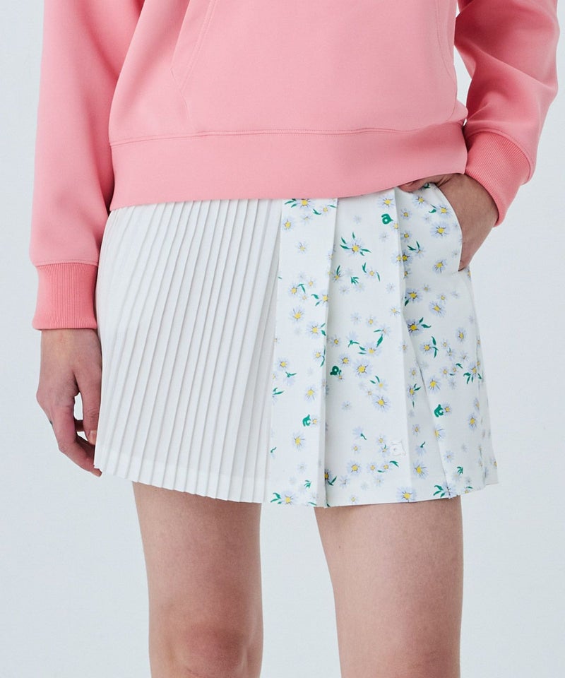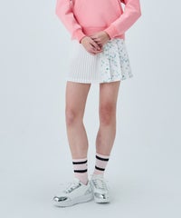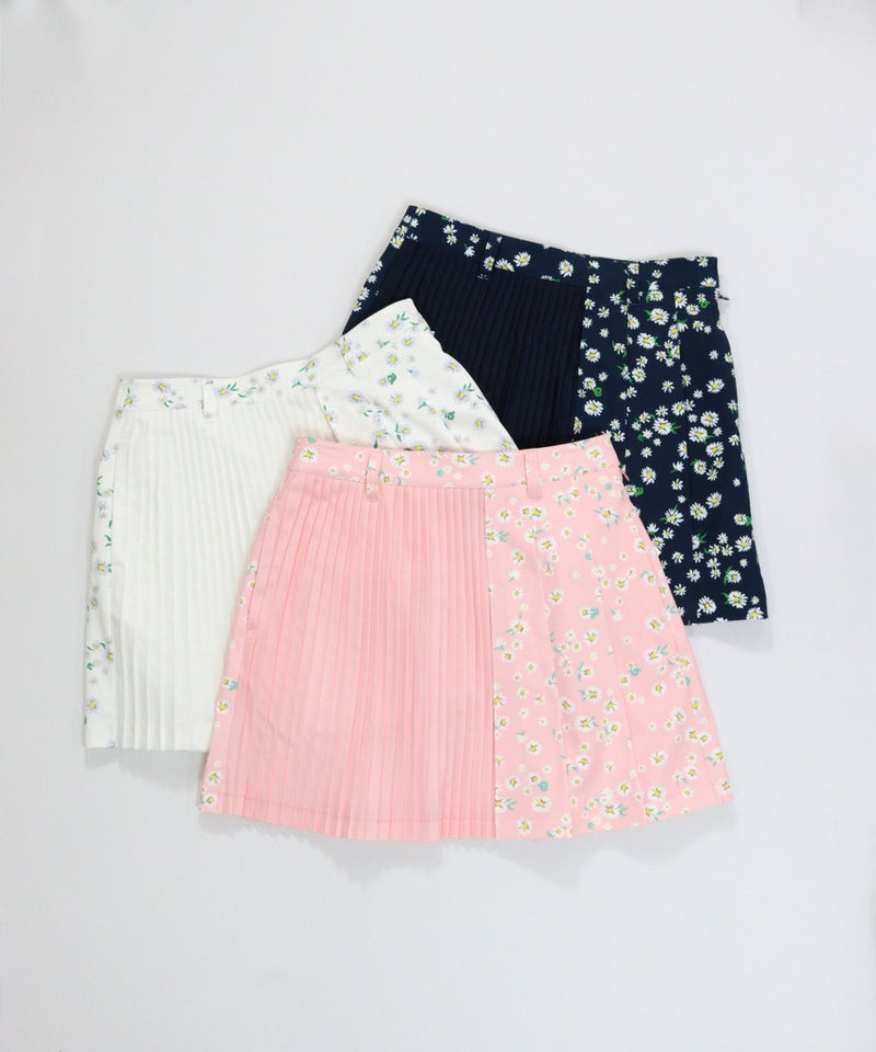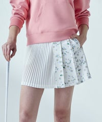 ・ラウンドに外せないプリーツスカートは、この春オリジナルの花柄をプリントでアップデート
