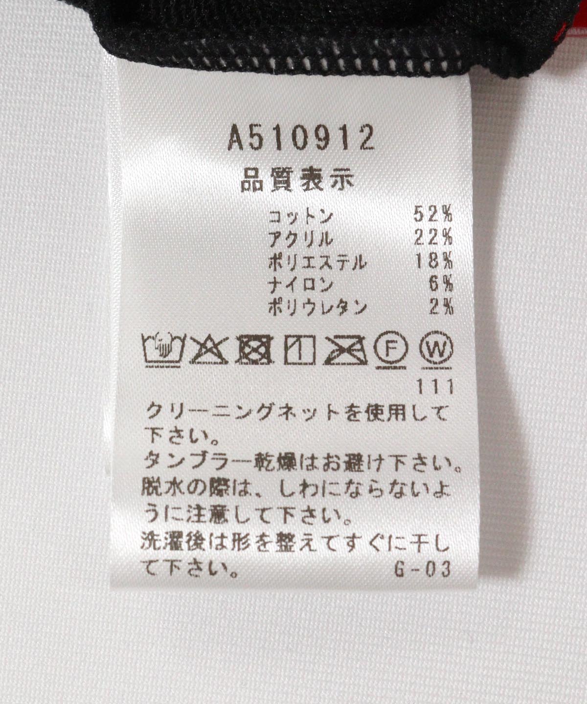 コットン52%,アクリル22%,ポリエステル18%,ナイロン6%,ポリウレタン2%