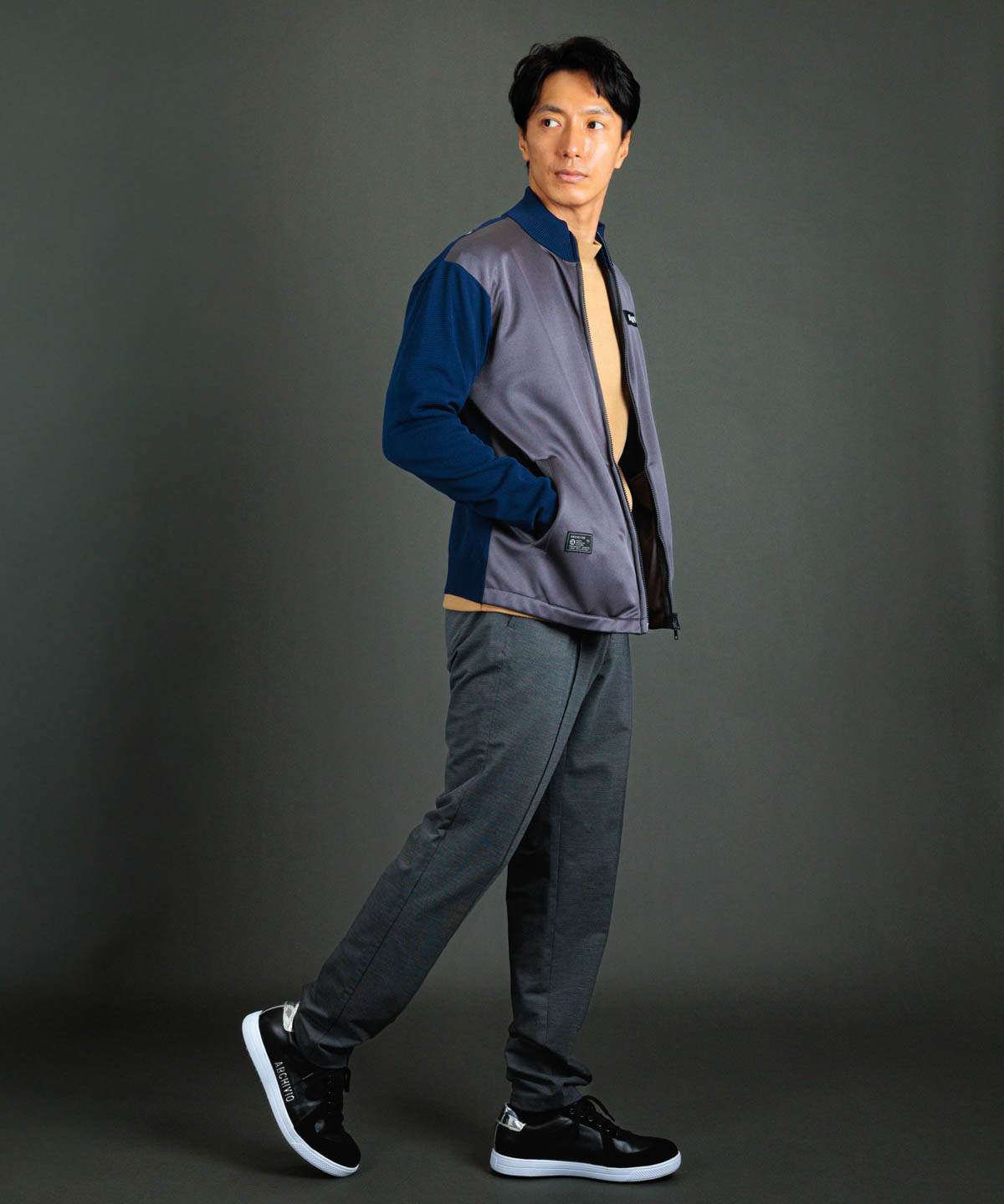 ・肩から袖にかけてのパイピングラインがアクセントとなり自然な着映えがかなう