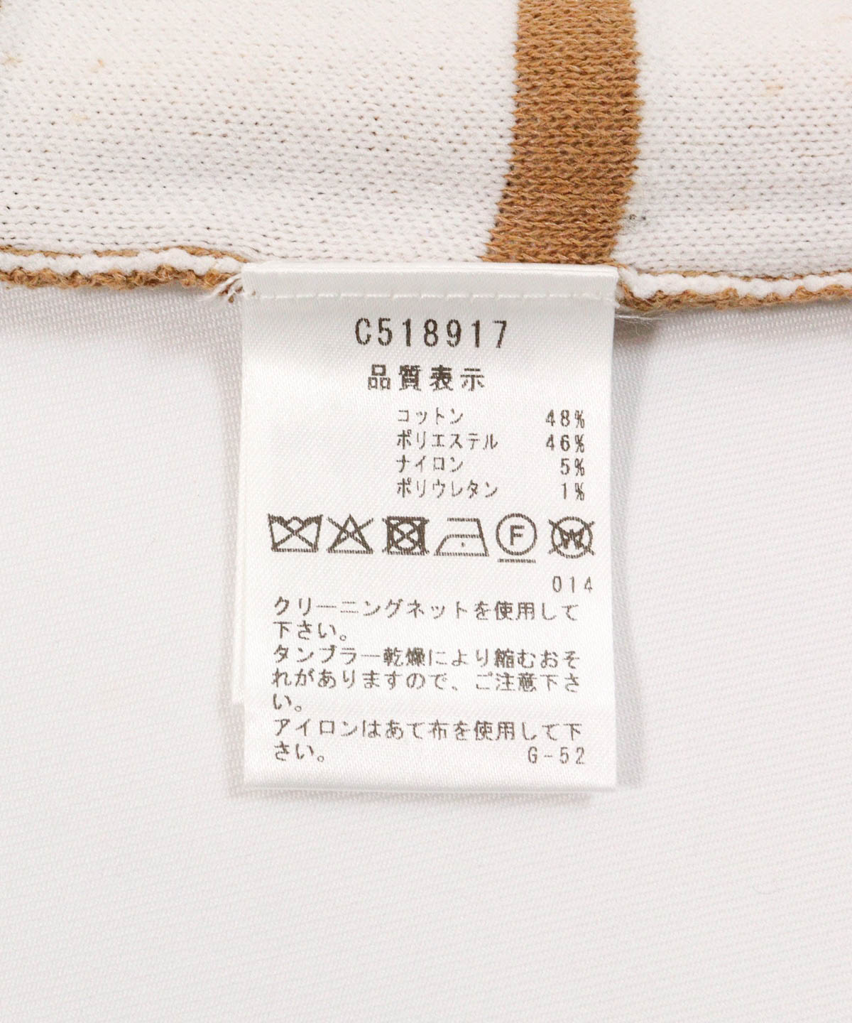 コットン48%,ポリエステル46%,ナイロン5%,ポリウレタン1%MADE IN CHINA