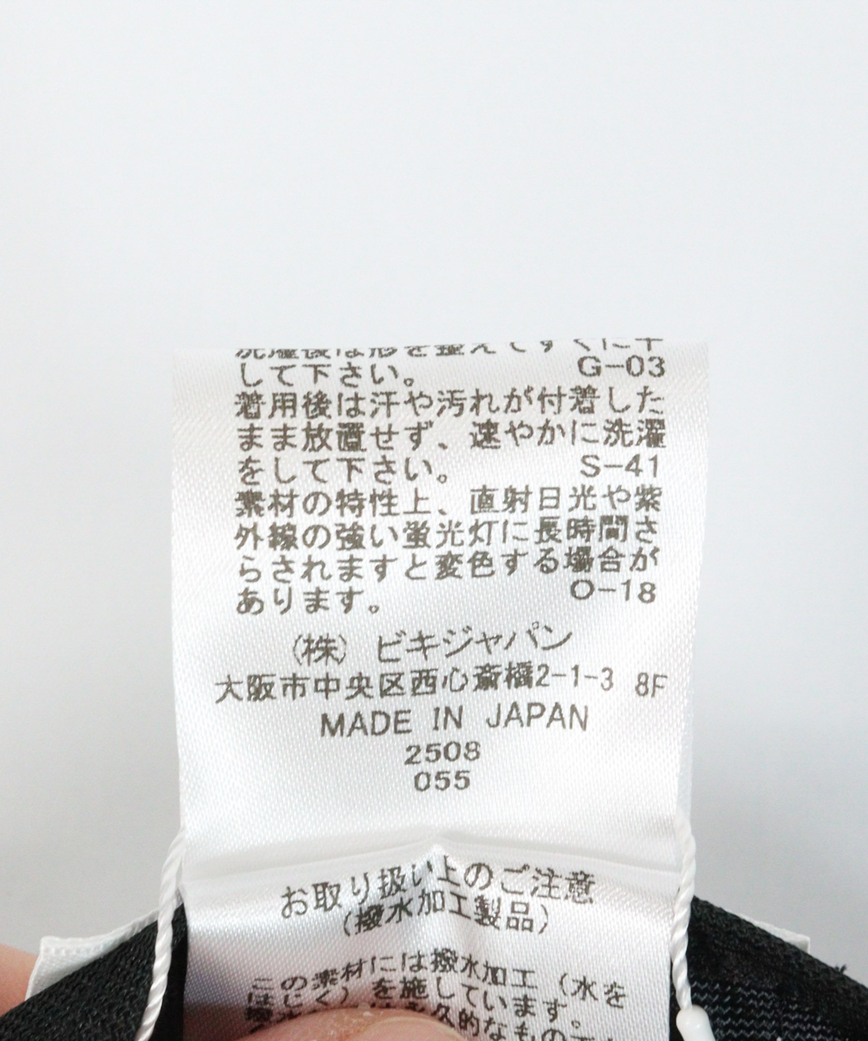 ・ロゴテープ部分のドロストコードで頭周りサイズの微調整が可能