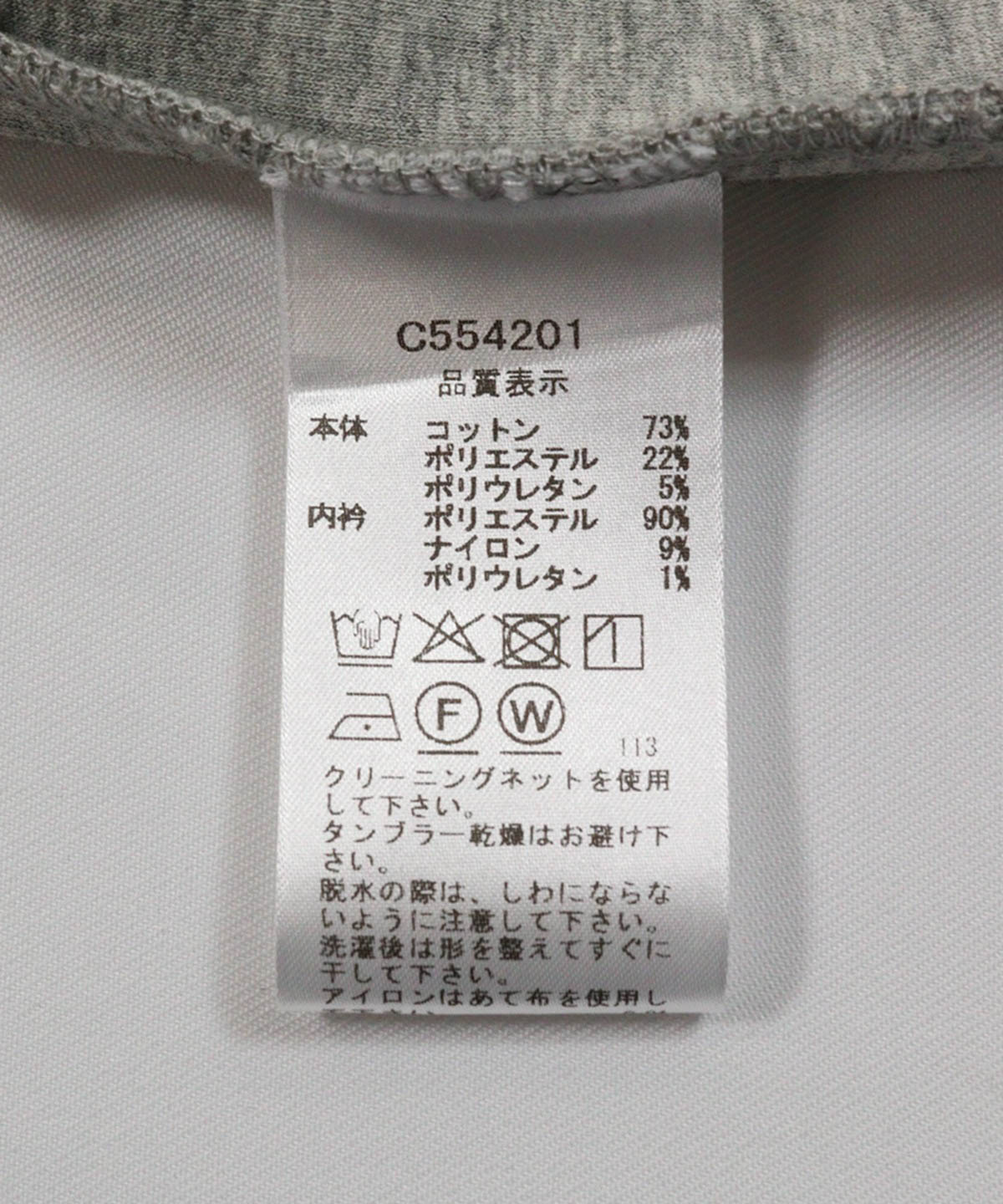 本体:コットン73%,ポリエステル22%,ポリウレタン5%