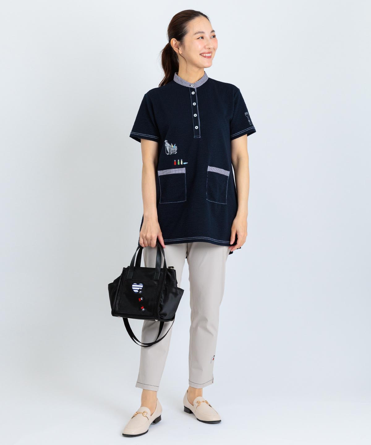 ・目を惹くハートのワッペンとピコ刺繍が可愛い