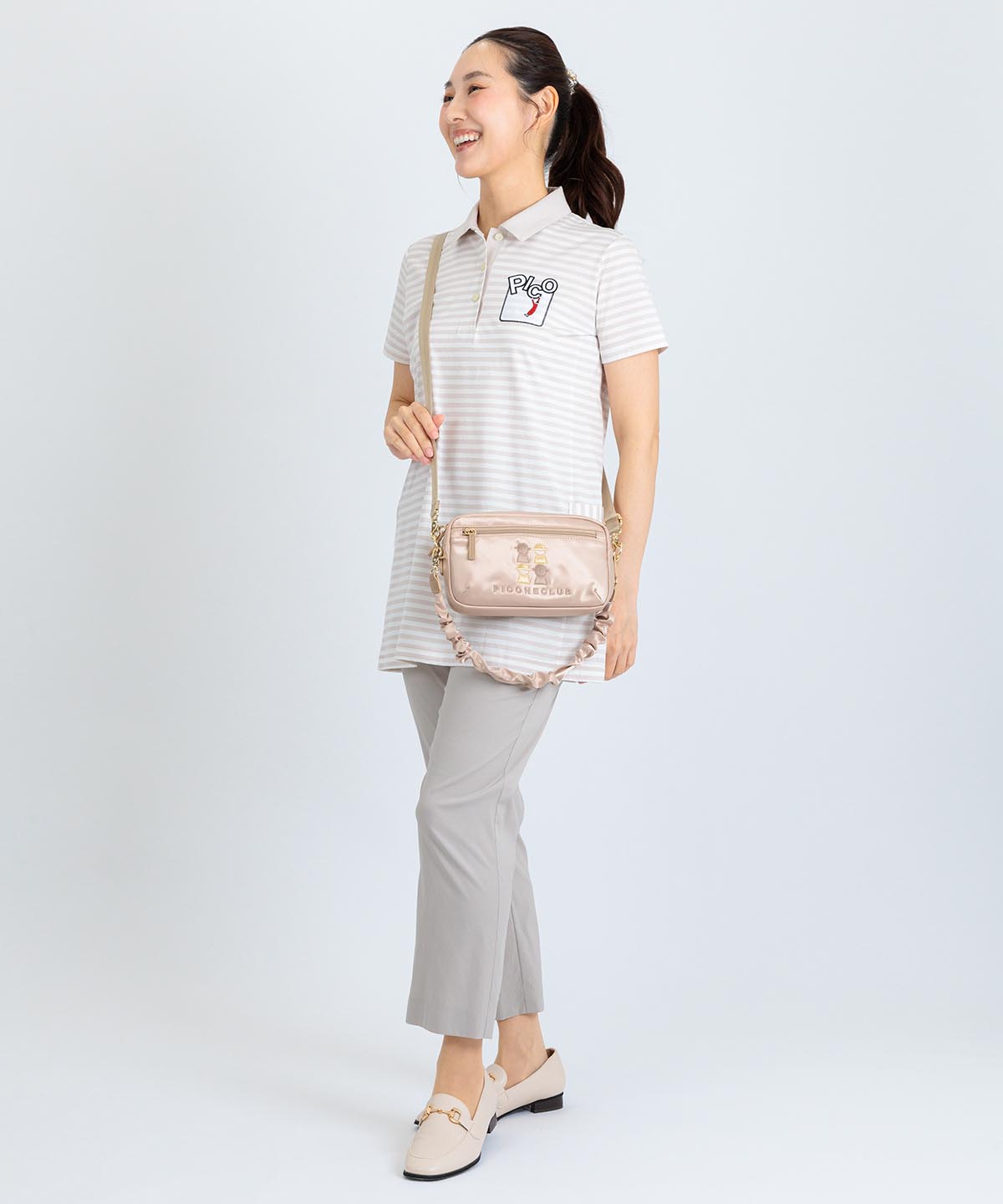 爽やかなボーダー柄のチュニック丈ポロシャツ