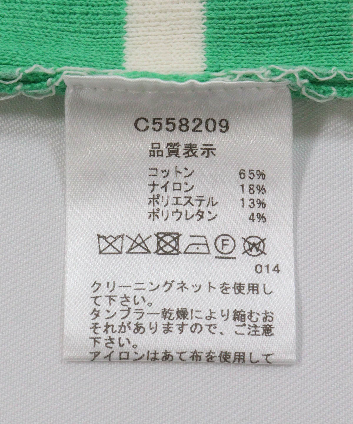 コットン65%,ナイロン18%,ポリエステル13%,ポリウレタン4%