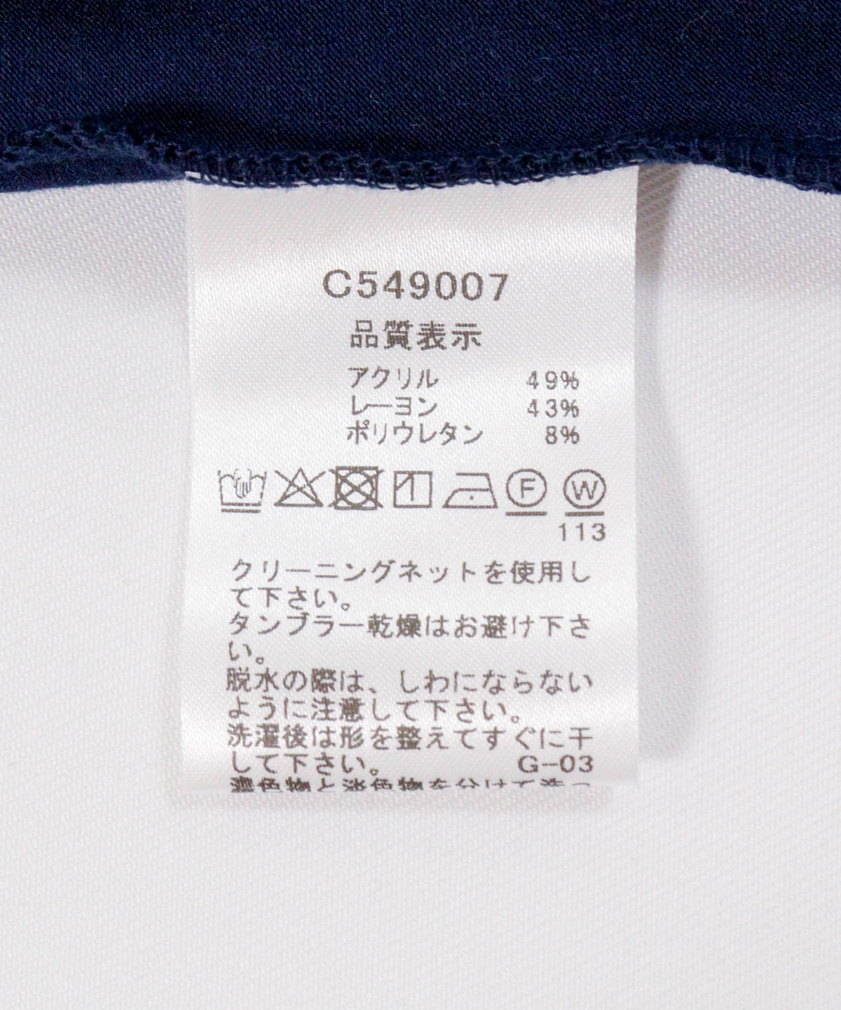 アクリル49%,レーヨン43%,ポリウレタン8%