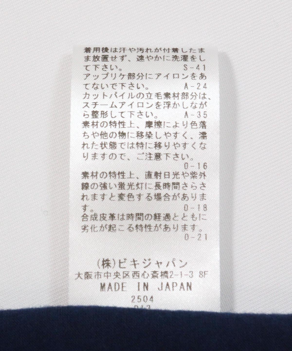 アップリケ部分: 合成皮革(PU加工)
