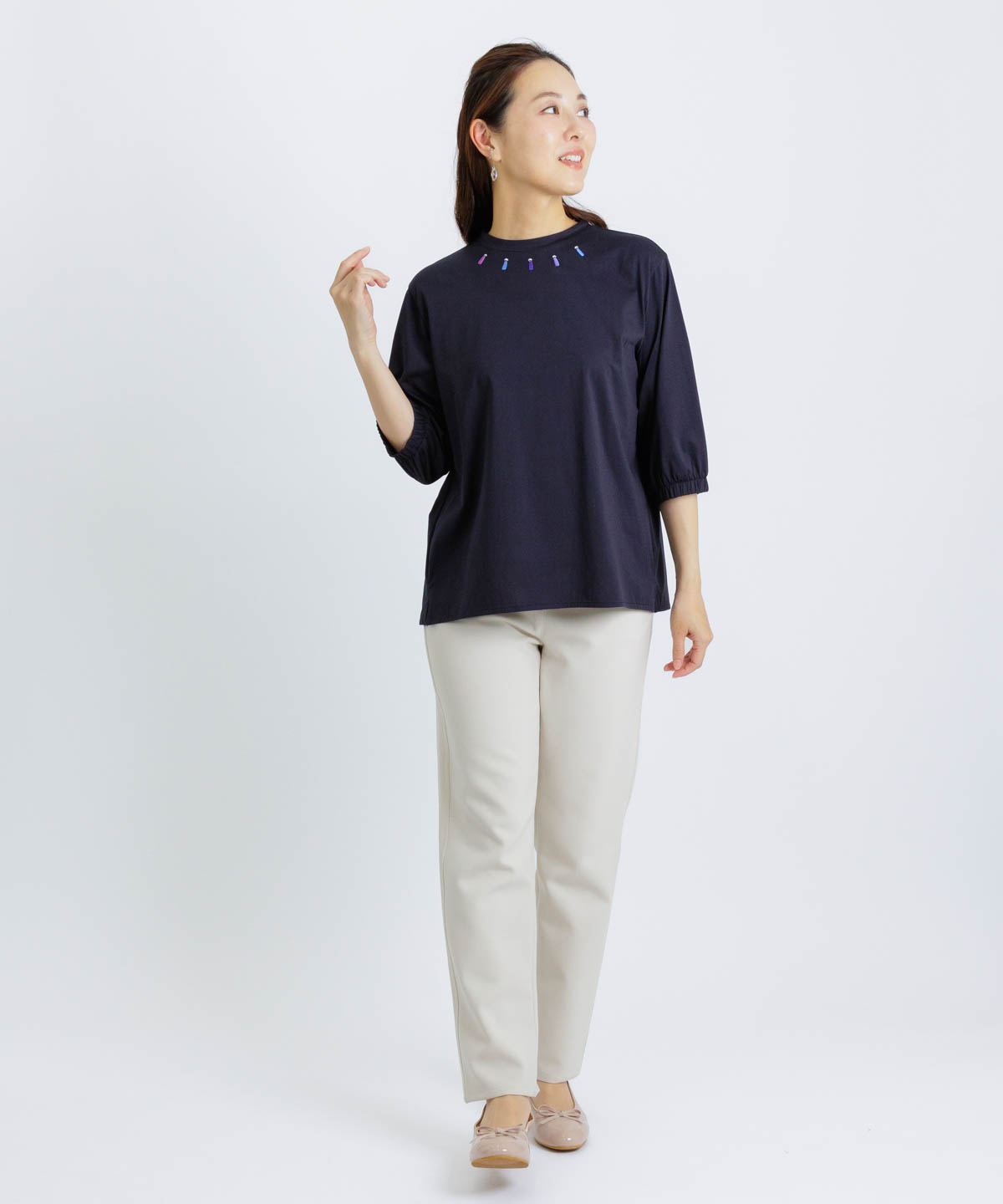 ・コットン70%混でまるでシルクのような、しなやかでサラサラな風合い。伸縮性あり