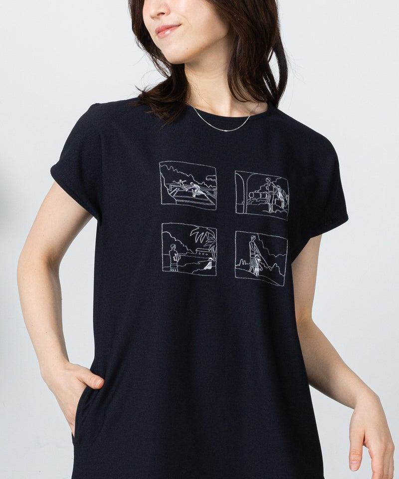 ・海辺のシーンやスポーツを楽しむ様子などを表現した特徴的なイラスト刺繍
