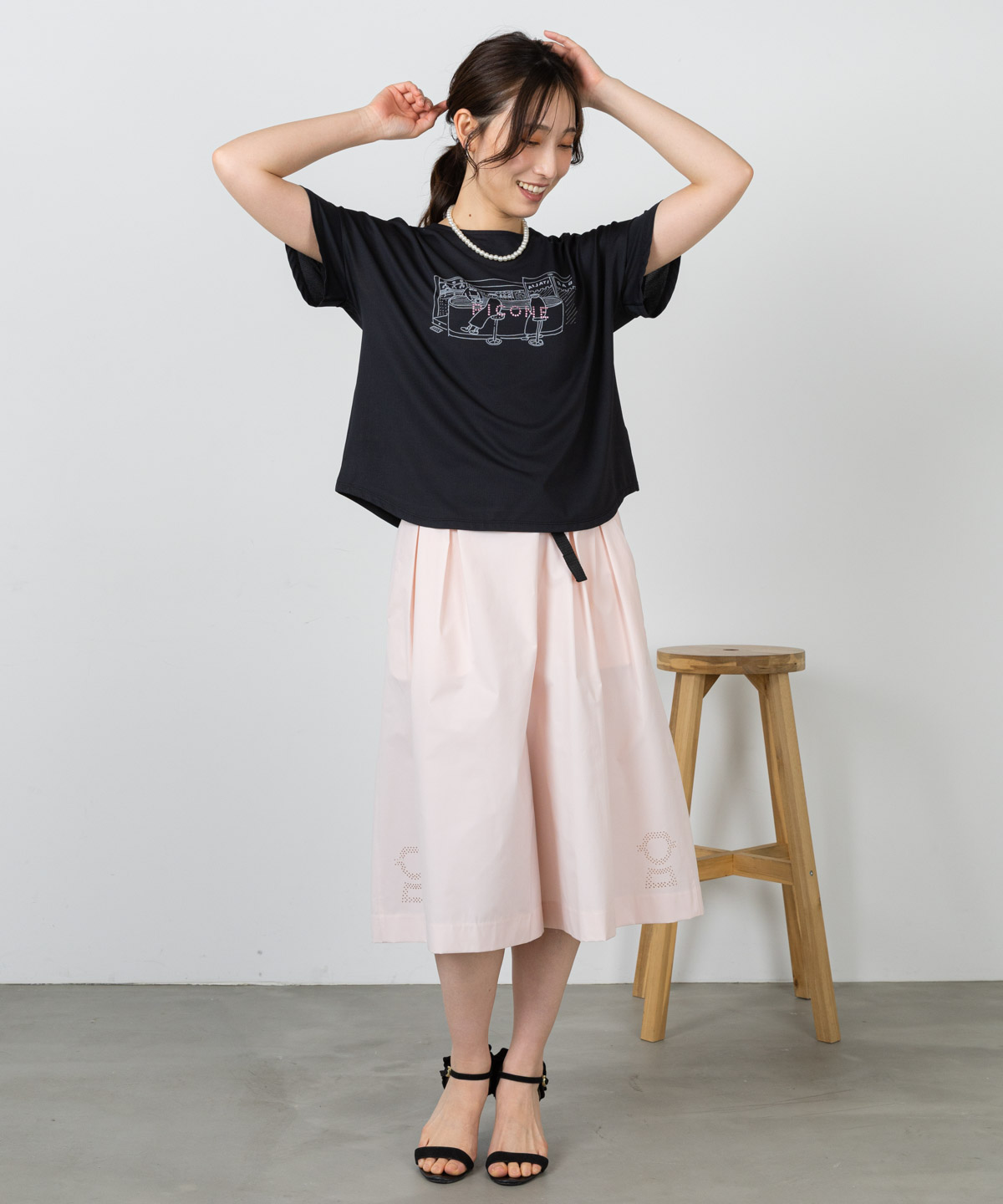 ・裾のサイドに施したパンチングのピコモチーフで抜け感とおしゃれ感を演出