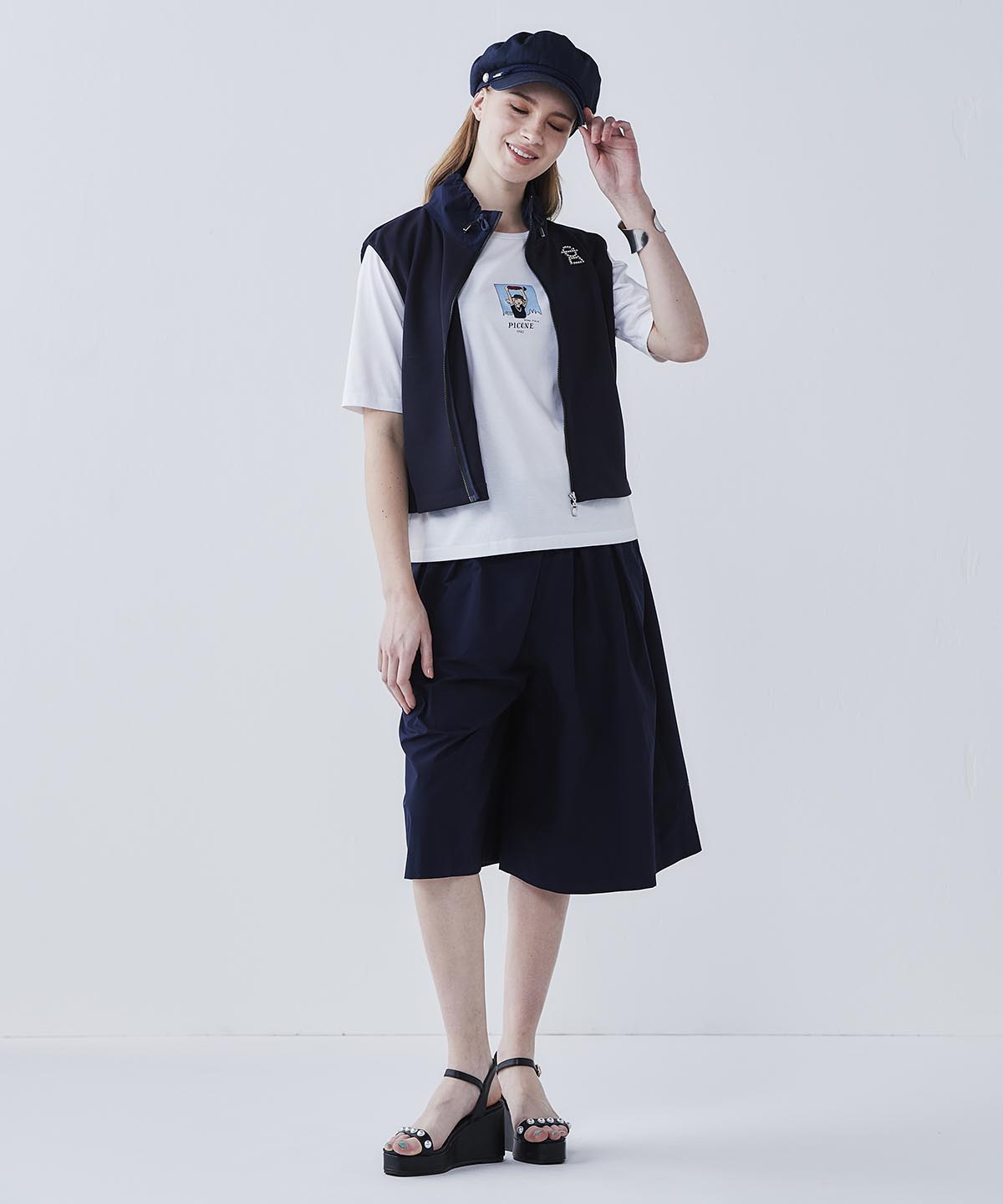 ・裾のサイドに施したパンチングのピコモチーフで抜け感とおしゃれ感を演出