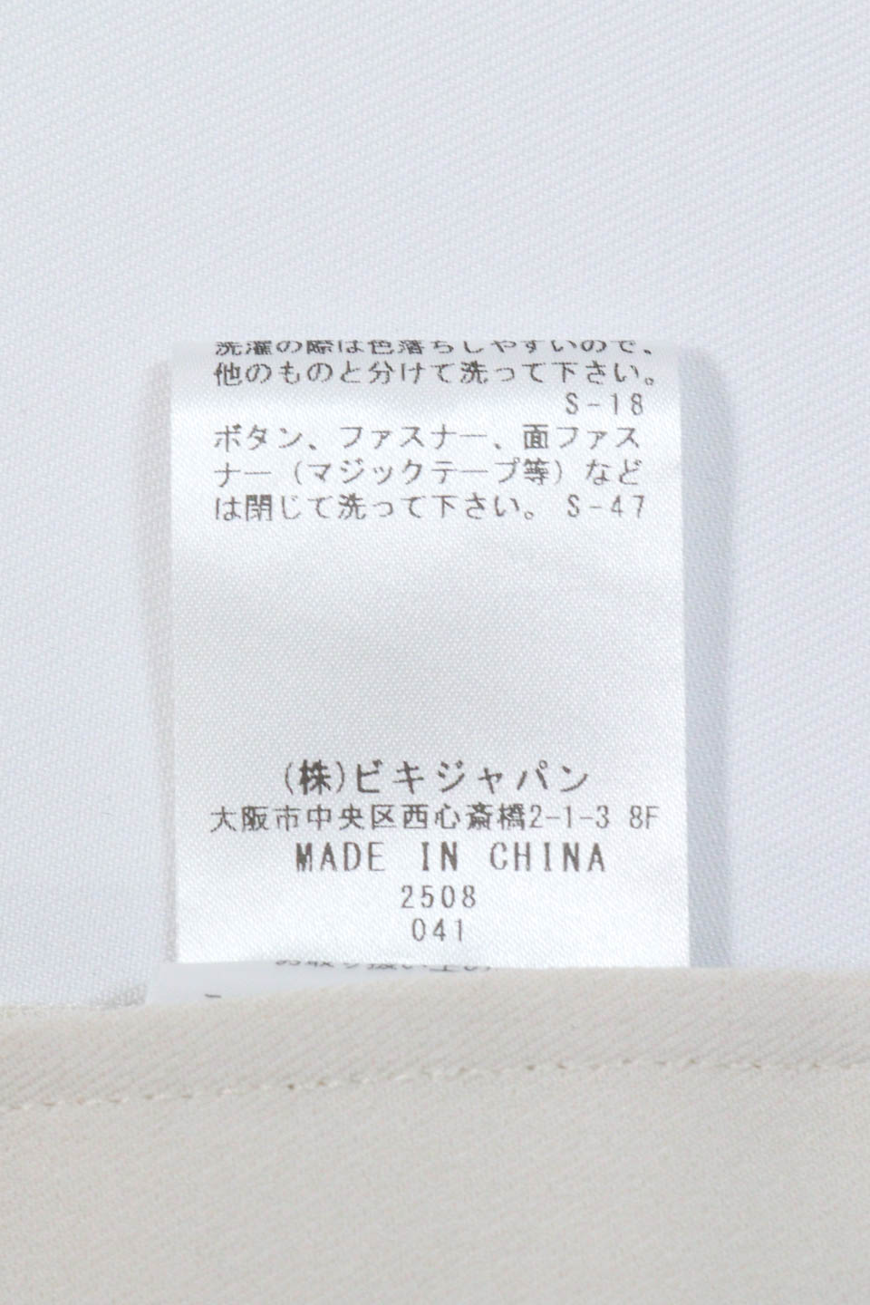 ポリエステル97%,ポリウレタン3%MADE IN CHINA