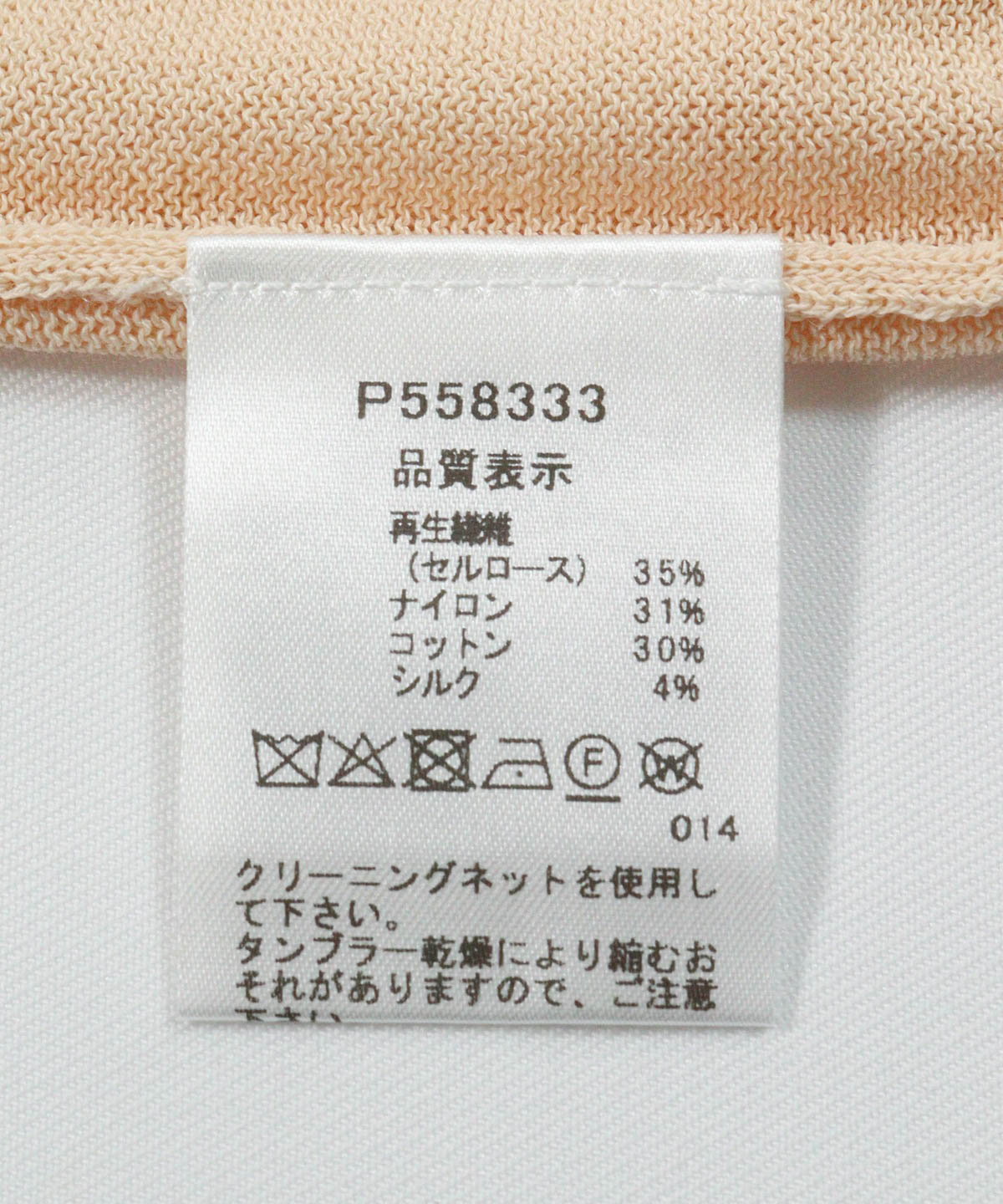 再生繊維(セルロース)35%,ナイロン31%,コットン30%,シルク4%