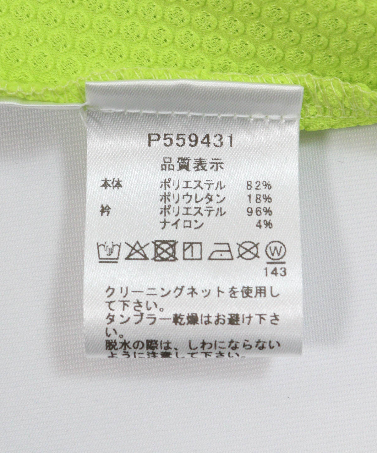 本体ポリエステル82%,ポリウレタン18衿:ポリエステル96%,ナイロン4%MADE IN JAPAN