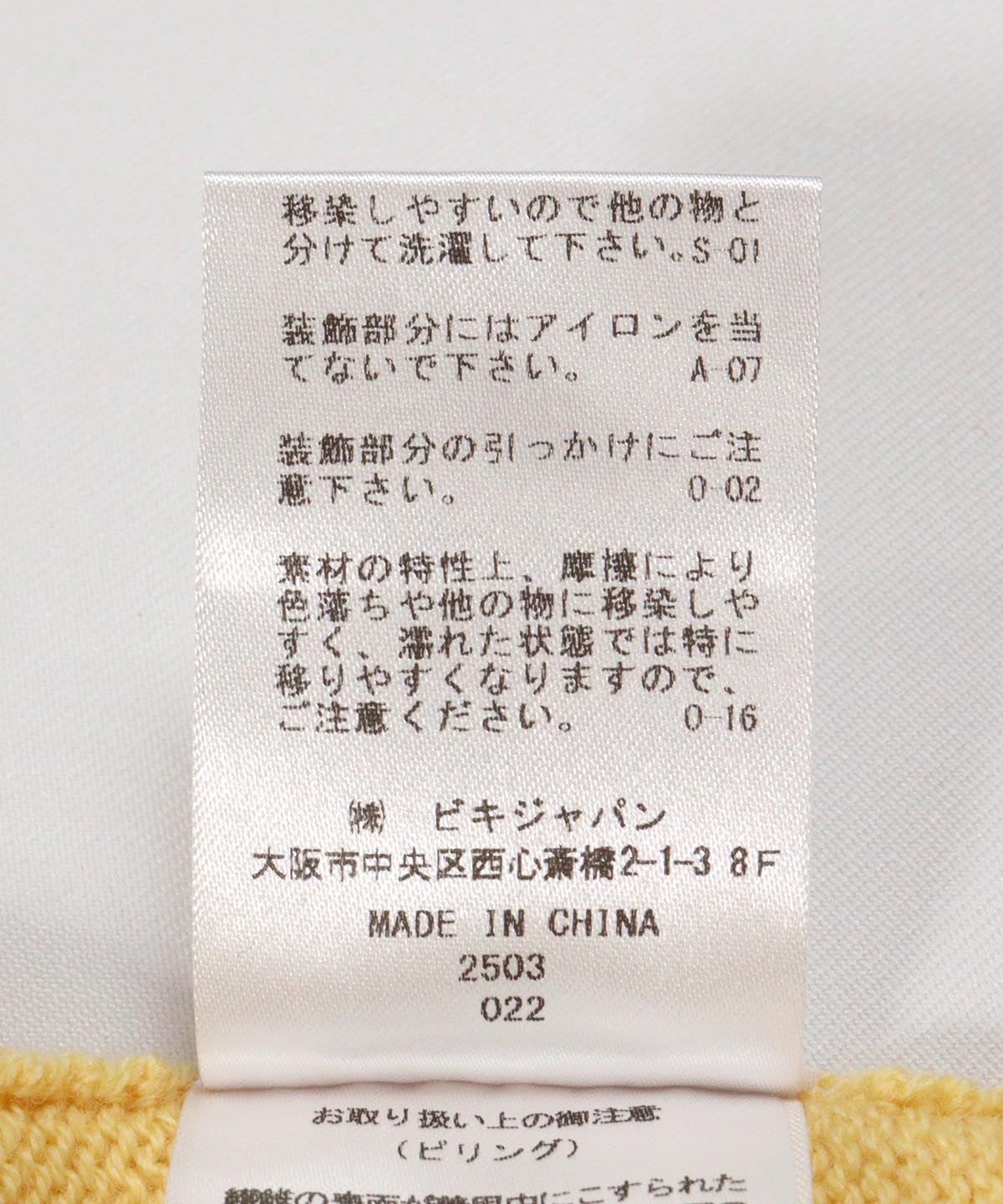 襟元部分(イエロー)
