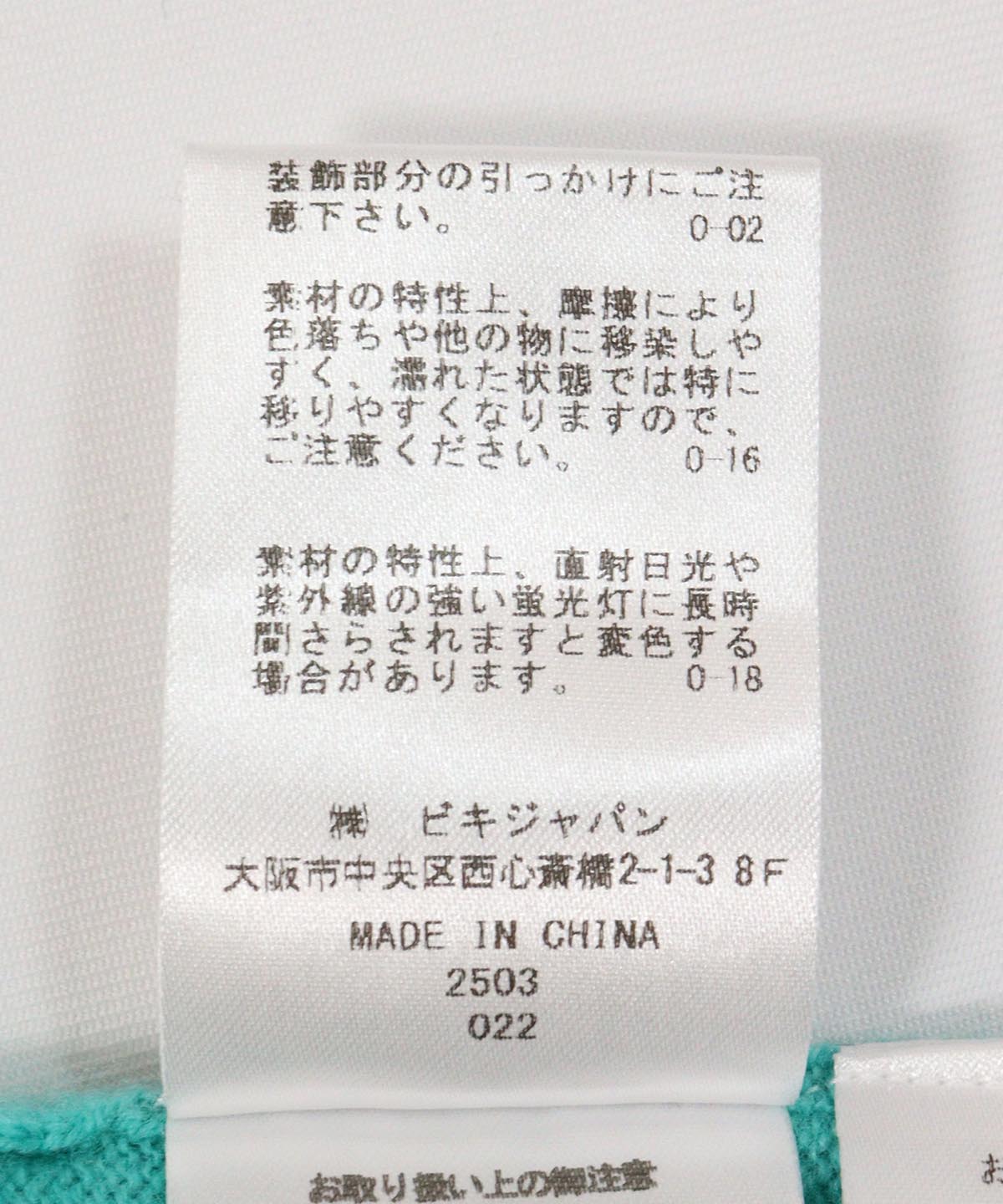 首元部分(ライトグリーン)
