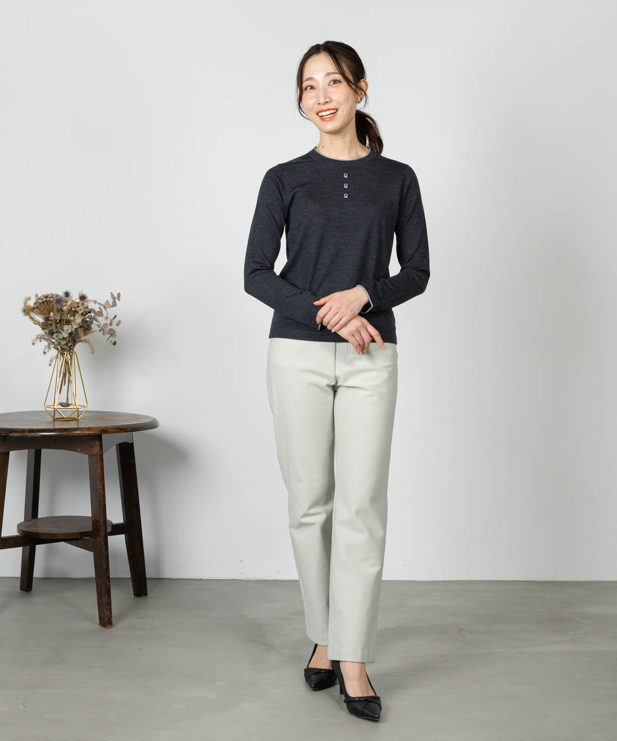 ・選び抜かれた上質な極細のメリノウールを使用し、なめらかで柔らかな質感があり保湿性の高いニット