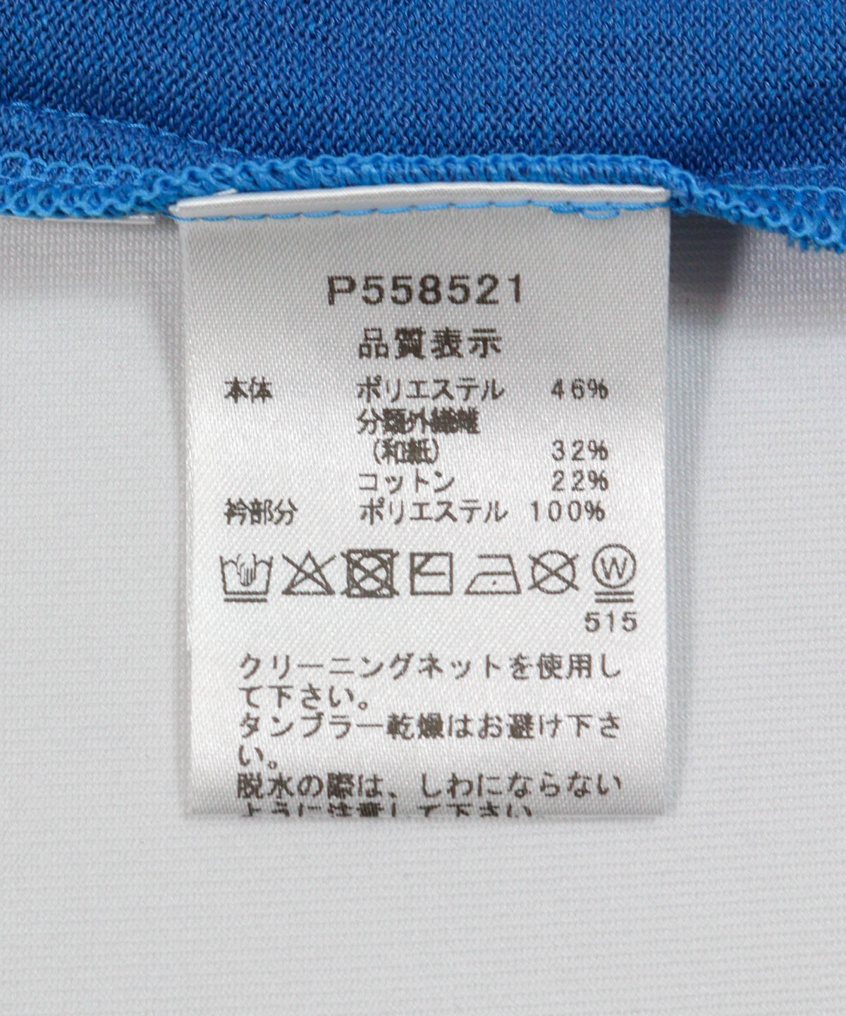 本体:ポリエステル46%,分類外繊維(和紙)32%,コットン22%