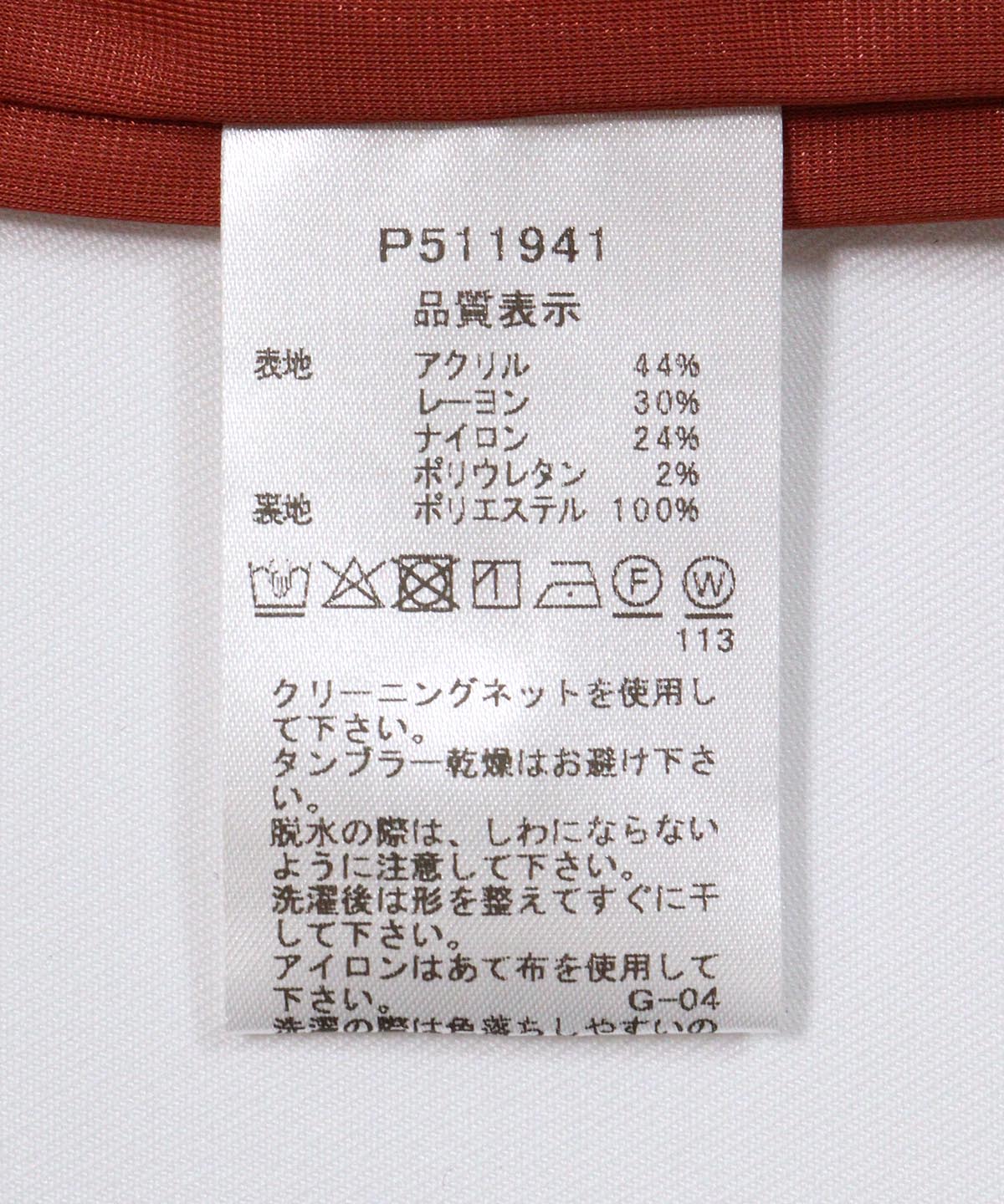 表地:アクリル44%,レーヨン30%,ナイロン24%,ポリウレタン2%
