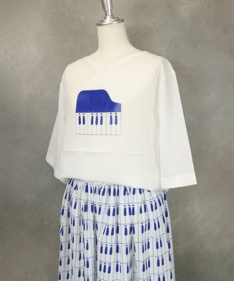 Vネックピアノプリントプルオーバー