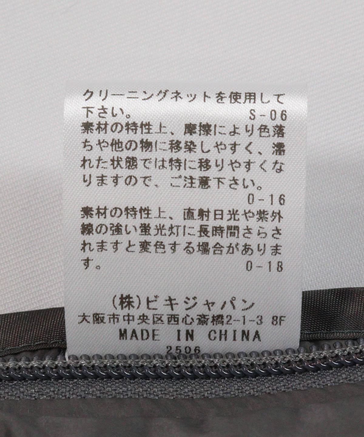 ファスナー部分(グレー)