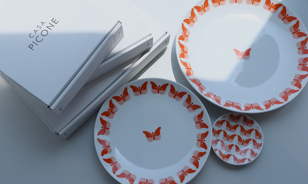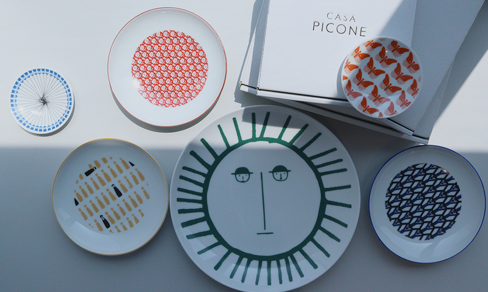 カーサピッコーネの代名詞でもあるジュゼッペ・ピッコーネのアートを取り入れた食器。