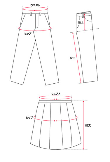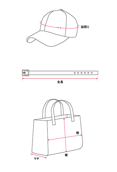 各アイテム別の詳細は下記をご確認ください。実際の商品がサイズ表の数値と多少異なる場合もございます。