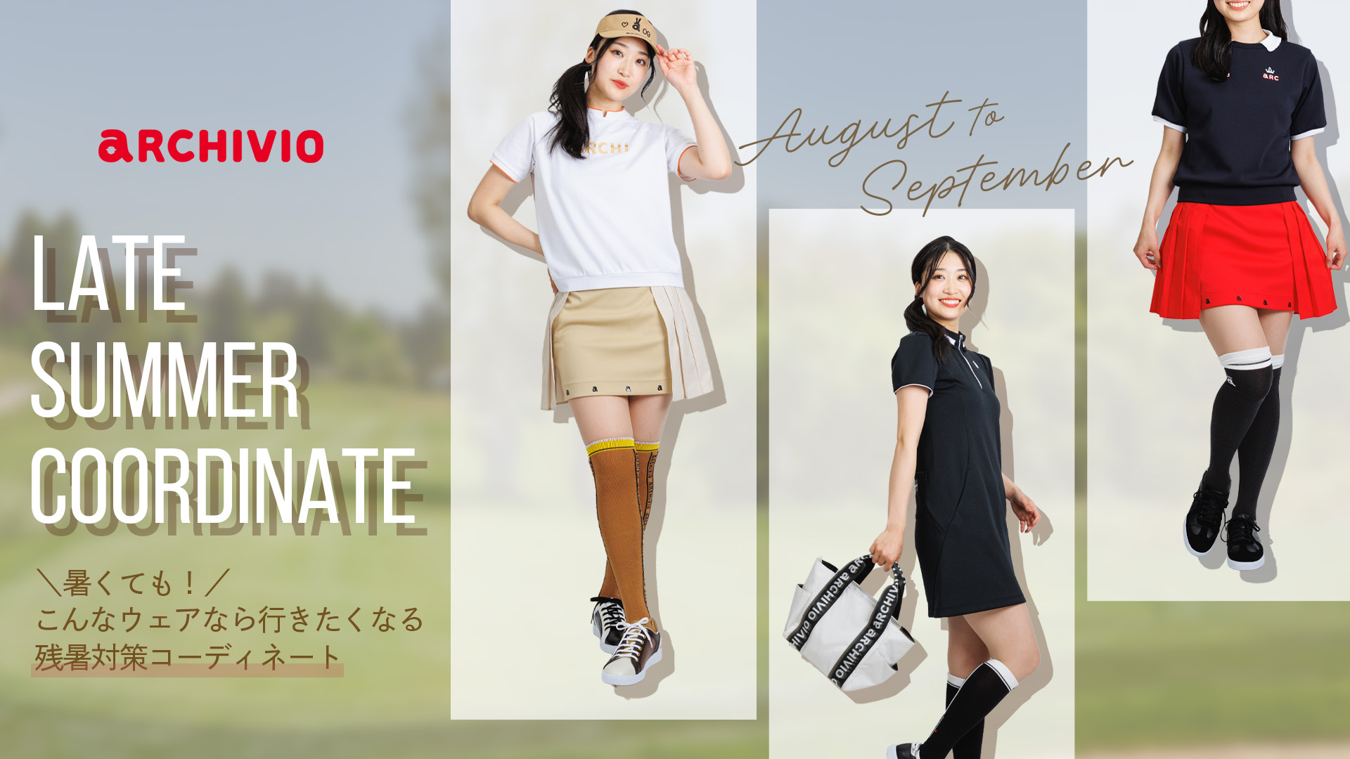 残暑厳しい8-9月のゴルフにおすすめなアイテムで、コーディネートをご紹介します。