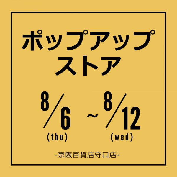 2020.8.5【京阪百貨店守口店】ポップアップストア開催(終了しました)