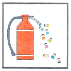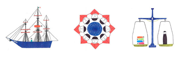 アルキビオをモティーフに使った楽しい絵柄をハンドプリントした
