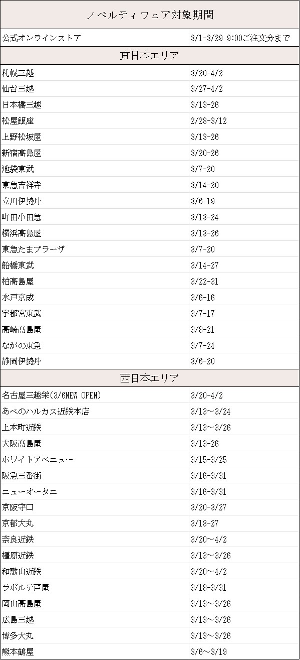 【3月】ノベルティフェアのお知らせ(終了しました)2024.2.29